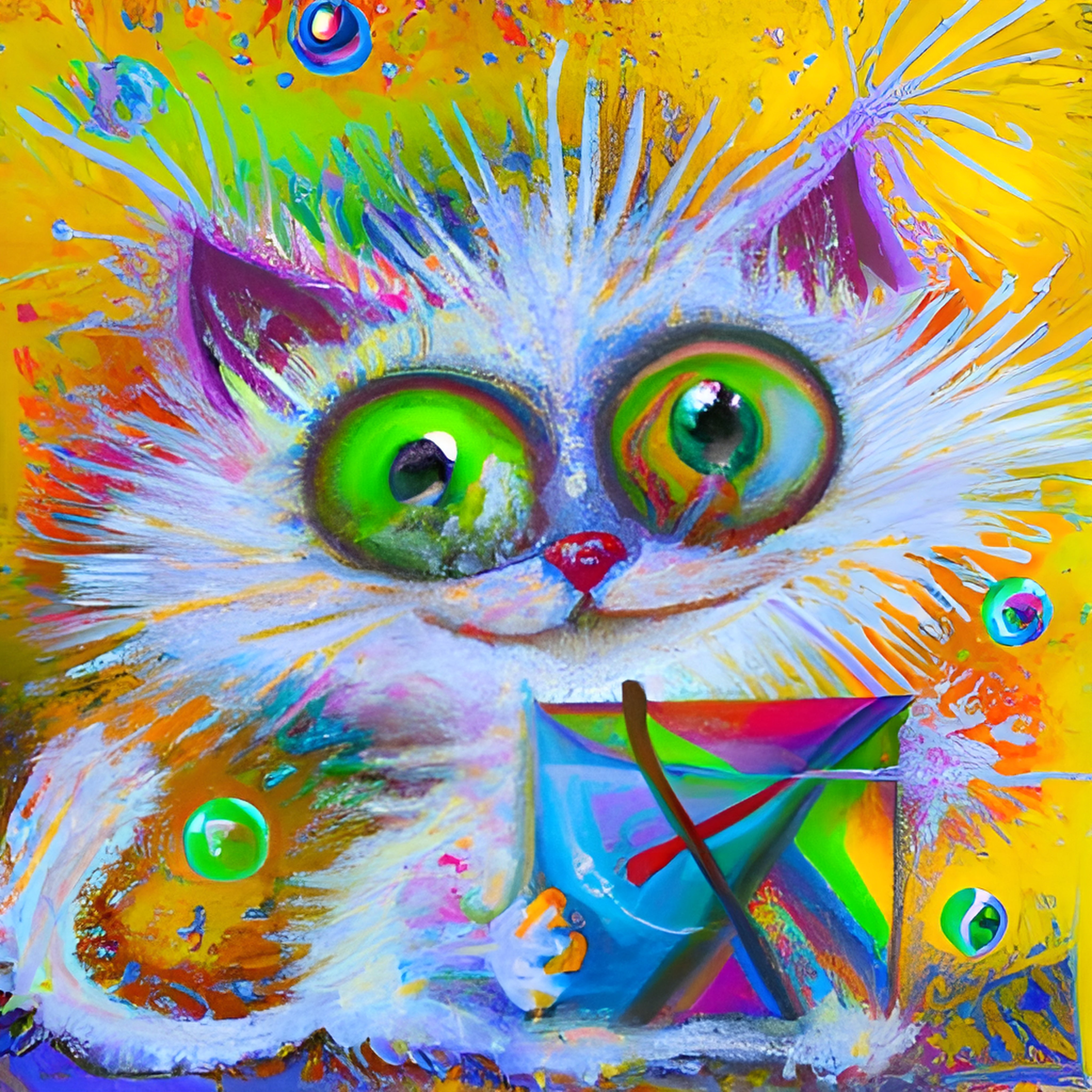 £140.00£140.00/Mick Pet Artwork Mick Pet Art is and enchanting artwork portrays a whimsical cat with vivid green eyes and a fluffy, colourful coat. Bright, swirling abstract...