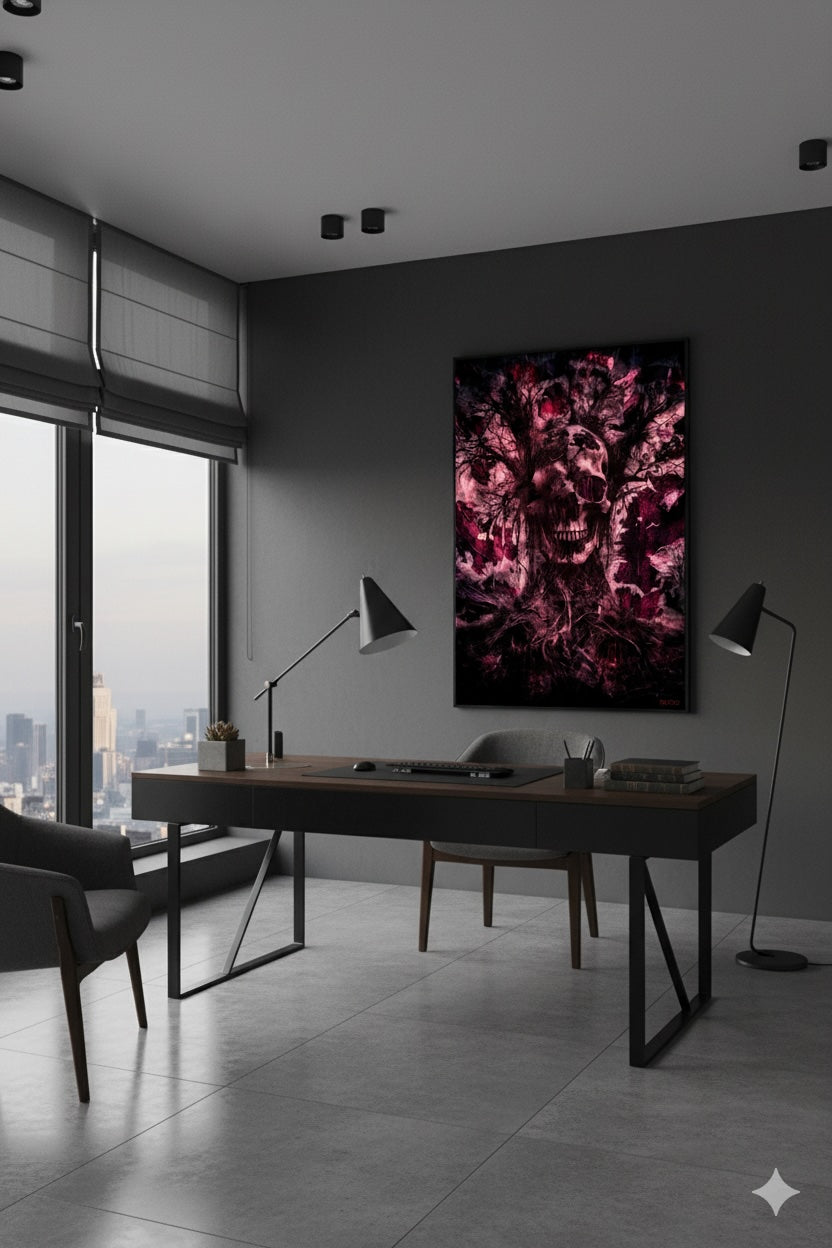Let this vision of death’s strange fertility take root in your space, turning walls into gateways where imagination and eternity intertwine.