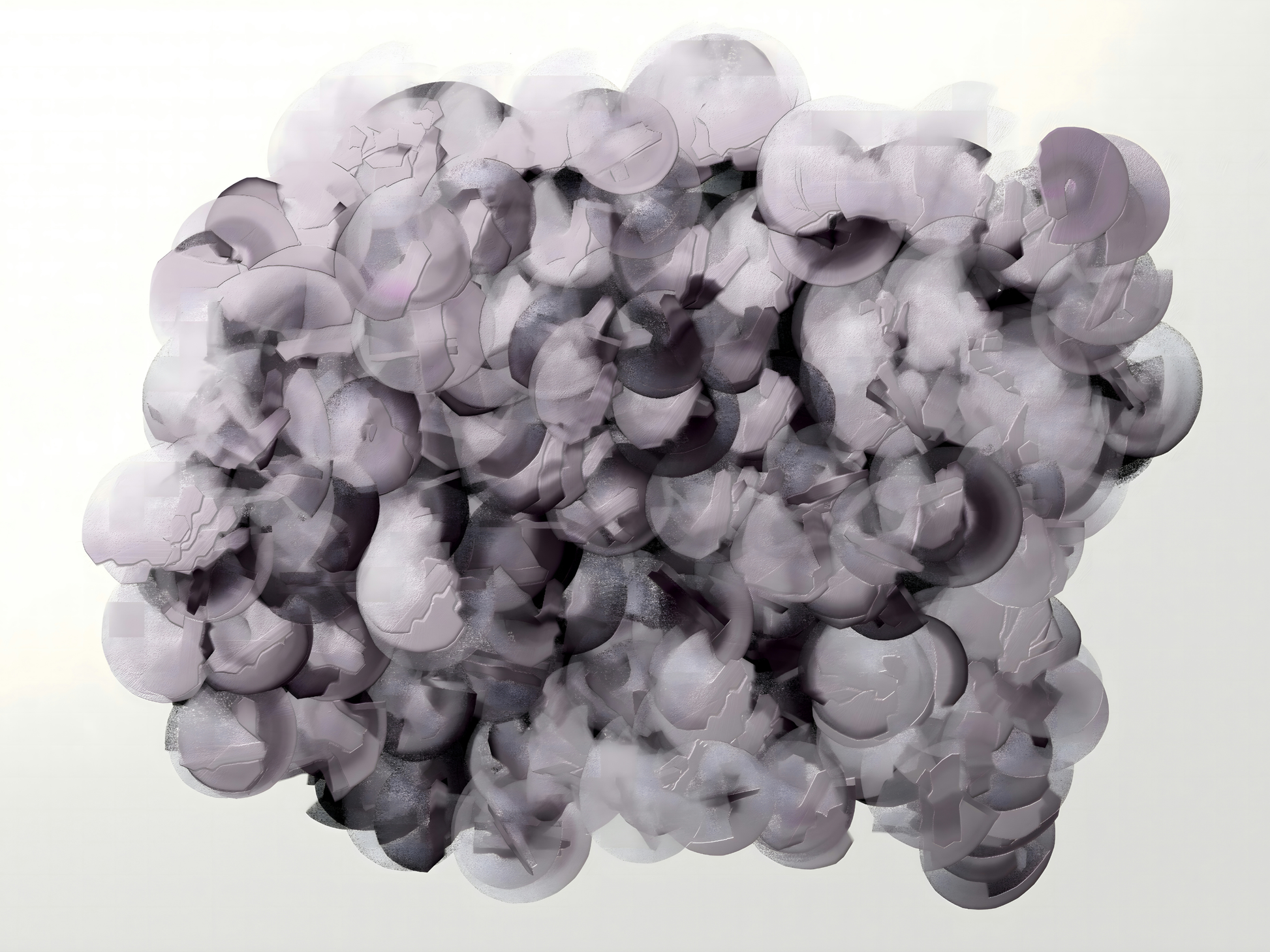 Bloom Shadows unfolds like a whispered breath of emotion — a soft collision of form and emptiness rendered in muted grays and lilac undertones. The clustered shapes feel alive yet fleeting, like memories that gather and dissolve in the quiet of thought. Its fluid abstraction evokes stillness and introspection, inviting the viewer to find peace within the storm of subtle motion.